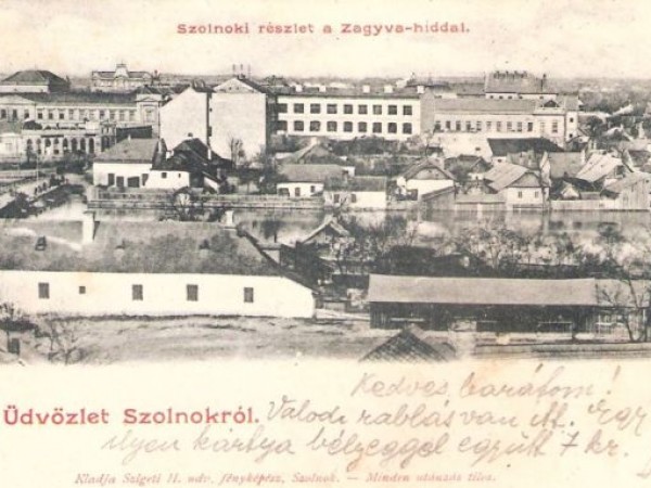 „Kedves barátom! Valódi rablás van itt. Egy ilyen kártya bélyeggel együtt 7 kr. Jenő” – A képeslapról egyértelműen kiderül a rablás helye. Szolnok. A postabélyegző pedig a rablás időpontját adja meg: 1900. április 5. A fotó sem készülhetett sokkal korábban.