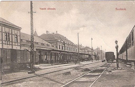 A fotózás idején éppen zajló munkáktól eltekintve kijelenthetjük, hogy száz évvel ezelőtt sem volt sokkal könnyebb megközelíteni a vonatokat Szolnokon, mint napjainkban. A gyönyörű állomásépületből kilépve ugyanis a szabadég alatt, döngölt földesnek tűnő, alacsony peronokon lehetett eljutni az e képeslap tanúsága szerint, olykor az ötödik vágányon álló személyvonatokig. Ráadásul úgy, hogy közben tehervagonokat is kerülgetni kellett. Persze volt némi világítás, de nem hinném, hogy egy késő őszi, esős este, felemelő érzés lehetett az ötödik vágányra Debrecen felől megérkezni.