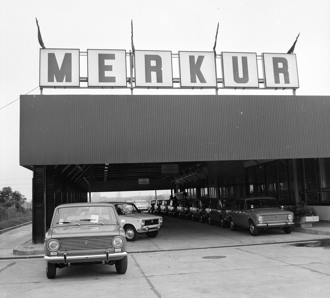 A hazai gépkocsiállomány alakulását a kereslet és a forgalmazó vállalat mellett leginkább a „baráti szocialista” országok kapacitása, illetve a KGST kooperációban rejlő lehetőségek határozták meg. A hatvanas években rajtunk kívül Románia és Bulgária sem gyártott személyautókat, és a Szovjetunió is még csak Moszkvicsokkal és Volgákkal tudta ellátni a „barátait”, miként a lengyelektől is maximum Warszawák jöttek, Syrenák nem. Ezeken kívül lehetett már olyan Trabantokat és Wartburgokat választani, amelyeket még a nyolcvanas években is gyártottak, illetve fokozatosan megjelentek a farmotoros Skodák első verziói is. Mindez azonban kevés volt, így nem véletlen, hogy a hatvanas évek végén, a hetvenes évek elején olykor nyugati márkák is feltűntek a MERKÚR kínálatában, leginkább olasz FIAT-ok, rövid ideig Renaultok és Volkswagenek. Mivel azonban ezekért az importőrnek keményvalutával kellett fizetni, a Zsigulik megjelenése után eltűntek a palettáról. (Fotó: Fortepan 215706 – 127-es FIAT-ok várnak átadásra 1973-ban a MERKÚR csepeli telepén)
