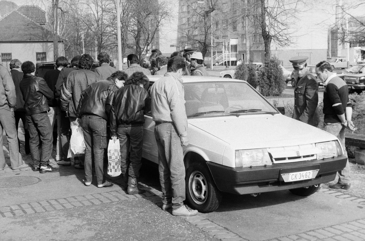 Az autó a Kádár-kor alatt státuszszimbólum volt. Eleinte az, ha egyáltalán valakinek tellett ilyesmire. Aztán, hogy Trabantja vagy Zsigulija volt-e. A nyolcvanas évektől pedig egyértelműen a keleti és a nyugati autó birtoklása tett különbséget az emberek között. Érdemes megnézni a korabeli magyar filmeket: ha jól menő orvost, butikost vagy fontos elvtársat vagy feleségét akarták ábrázolni, akkor az illetőt egy nyugati autóba ültették. Ez már akkor volt, amikor a fontos elvtársak többsége is csak Volgákkal vagy Polski Fiatokkal járt, és tényleg csak Kádárt és a minisztereket furikázták Mercedeseken. Aki akkoriban volt gyerek, az emlékezhet, hogy egy-egy nyugati autó micsoda feltűnést keltett, hány felnőtt is állt az itthon elérhetetlen csodákat beámulók között. Szocialista autó maximum akkor tudott ilyen kíváncsiságot kivívni, amikor egy-egy modell évekig tartó tervezése, megújítása után az Autó-Motor oldalai után az utcákon is megjelent, mint a mellékelt kiskunhalasi képen 1987-ben egy Lada Samara. (Fotó: Fortepan 255495)