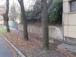 Van a belvárosi Mészáros Lőrinc utcában egy furcsa, magára hagyott járdaszakasz. A nagy posta után, a néhai telefonközpont épülete és udvari bejárata között. Ami mellett egy betonmellvédből kinövő "domb" van. Ezen a magányos járdán hosszú ideje csak gyűlik a lehullott levél, dagad a a massza, lassan olyan, mintha szivacson járna ott az ember. Előtte, után tiszta a járda. Az a rész senkié?