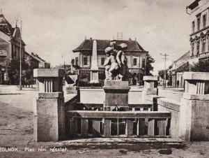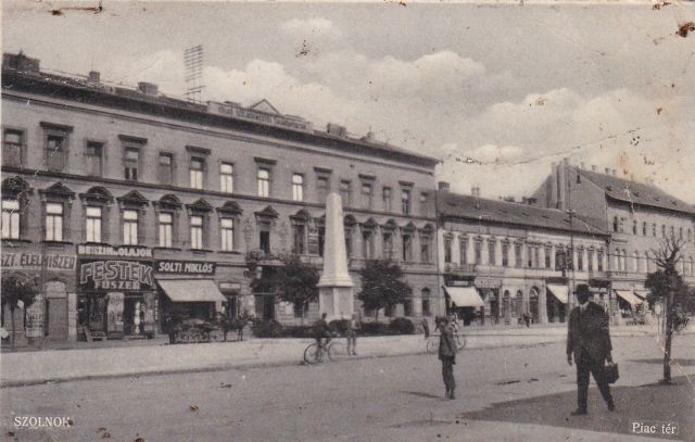 És, ha már a városházánál kezdtük a képzeletbeli sétánkat, fejezzük is be ott, igaz éppen a tér másik sarkától figyelve az épületet. Ez a kép szerintem már a negyvenes évek fordulóján készült, és még egy fontos változást elárul a tér szűk két és fél évtizedes történetéből. Mégpedig azt, hogy ebben az időszakban legalább egyszer felújították a városházát, vagy a homlokzatát. Ezen a képen ugyanis már csak annyi olvasható a tanácsterem hatalmas ablakai fölött, hogy városháza, míg a cikk legelső képén a Szolnok Város Közháza felirat látható. De hát egy város életében csak a változás az állandó. Ami pár évvel e kép készülte után jóval nagyobb volt, mint 1920 és 1943 között.