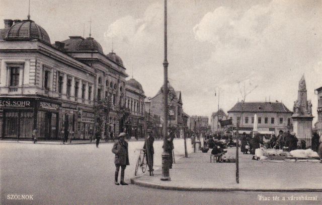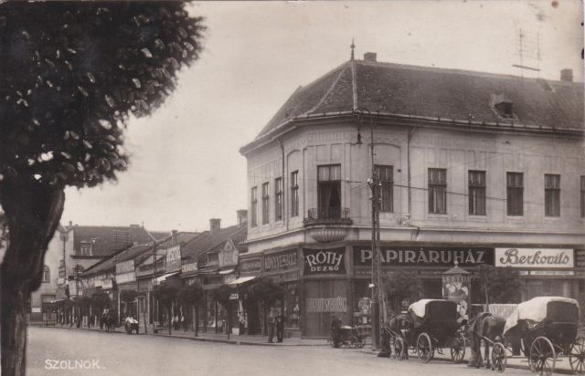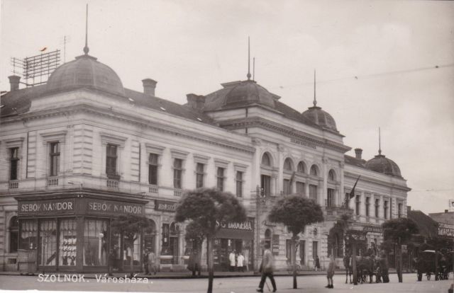 Talán nem túlzás azt állítani, hogy Szolnok főtere a két világháború között a város igazi kiskereskedelmi és szolgáltató központja volt. A mából nézve amolyan „Kossuth tér pláza”. Nemcsak a városháza földszintjén sorakozott legalább nyolc üzlet, de az akkor még a mainál kisebb tér minden oldalán, minden háza alján utcára nyíló kereskedések működtek. A régi képeslapok alapján úgy tippelem, legalább félszáz üzlet várhatta a vásárolókat a Kossuth téren. Azaz, akit a szolnoki piacra jött, ezekben a boltokban a fehérneműtől a könyven és az írószeren át, a húsig, a festékig vagy éppen a dohányáruig mindent be tudott szerezni. A tér talán legrégebb óta ugyanazon a helyen működő kereskedése Sebők Nándoré lehetett a városháza Táncsics – akkor még Apponyi – utcai sarkán.