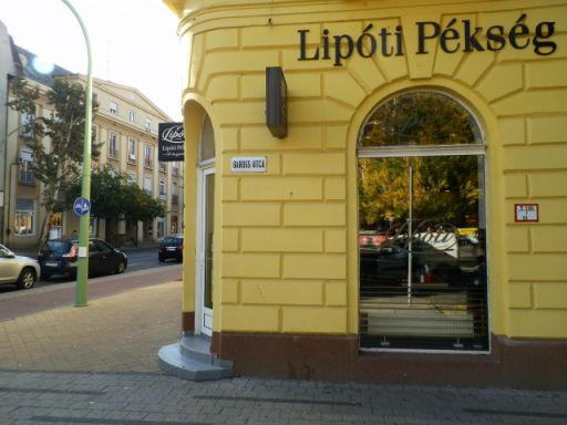 Bár a kakaóscsigájuk receptjén változtattak, nem vonom vissza a bő két és fél évvel ezelőtt, még a korábbi helyről írt véleményemet, miszerint tisztelem a lipóti péket, és vannak olyan termékeik, amiket kifejezetten szeretek. Ám ebben az esetben, ez nem lenne elég ahhoz, hogy újra írjak róluk. Itt most tényleg az a lényeg, hogy a lipóti pék termékeit helyben is elfogyaszthatom. És például egy tejeskávéval, egy iskolás szendviccsel – ami neve és ára ellenére vállalható, sőt -, meg egy meggyes pitével leülhetek a talán tíz szék egyikére, hogy miközben kényelmesen tízóraizok, még a várost is nézhetem a portál mögül. Az őszi napsütésben, kell annál több, mint jót enni, és figyelni az előttem elvonuló szolnoki történeteket?