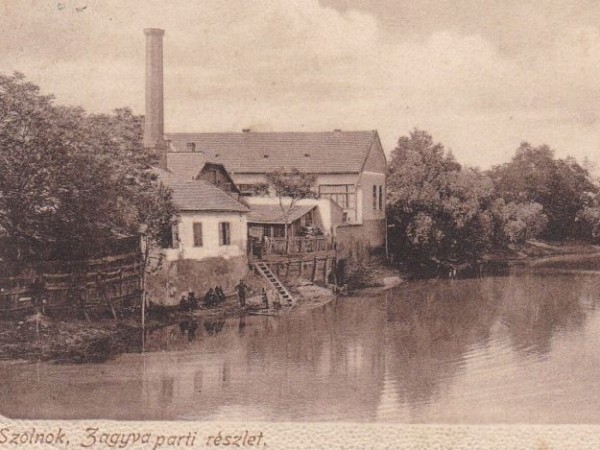 Az egyébként ferdén nyomtatott képeslapra került szöveg nélkül nem mondanám meg elsőre, hogy ehhez az 1913-ban, Budapesten kiadott anzikszhoz használt fotó Szolnokon készült. Hacsak nem akad korábban a kezembe Kaposvári Gyula Szolnok képekben című, 1984-ben megjelent könyve, amiben ugyancsak megtalálható ez a felvétel. Ráadásul kísérőszövege nemcsak alátámasztja a korabeli kiadó helymeghatározását, de még a felvételen látható kémény funkciójára is magyarázattal szolgál. Tehát két forrás is egyértelműen alátámasztja – a fővárosi kiadó felirata és a Damjanich Múzeum néhai igazgatója -, hogy bizony ez a kép Szolnokon készült, és a Zagyva-partot ábrázolja. (Kaposvári szerint a kémény a tabáni Alcser-féle kékfestő műhelyhez tartozott.)