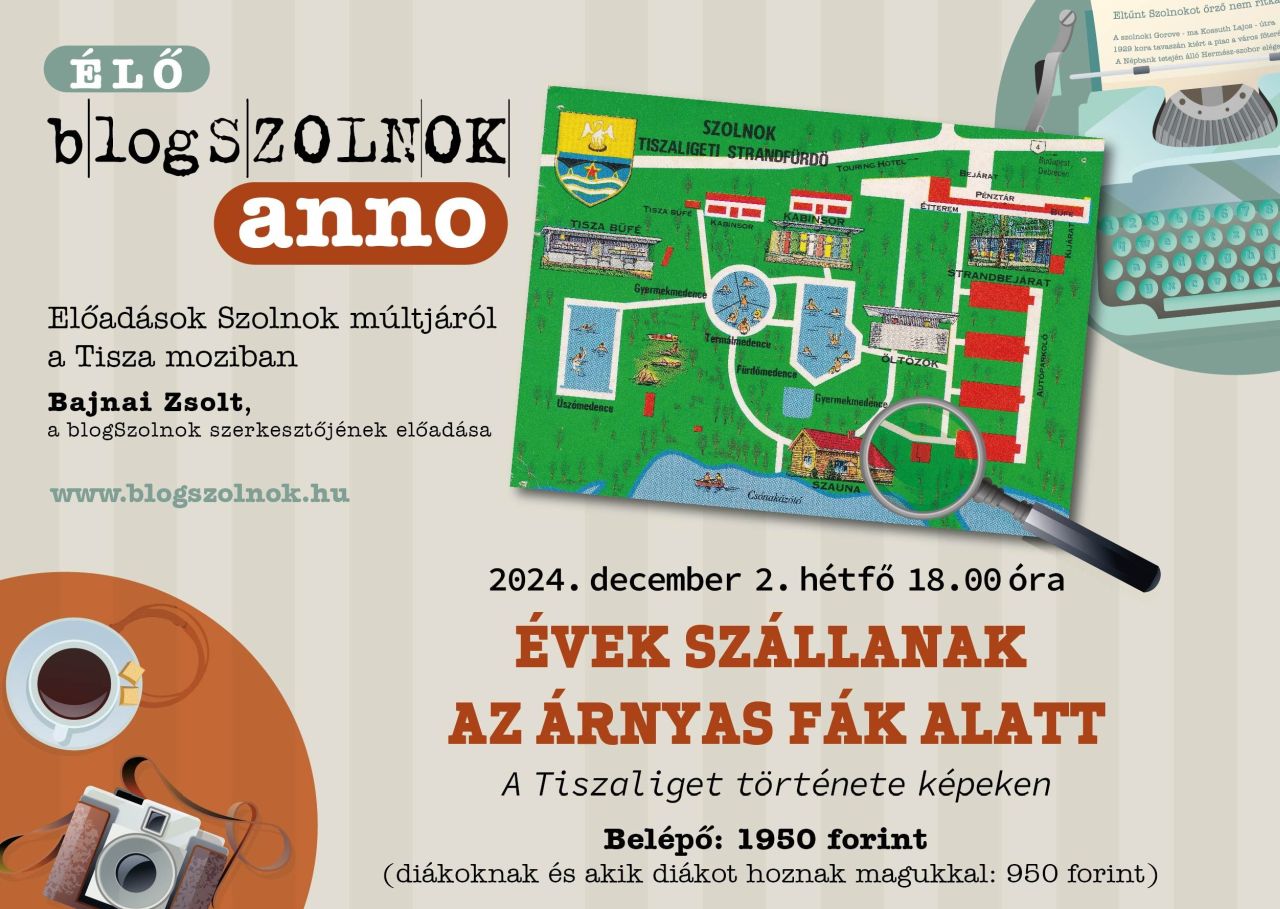 Talán lesznek majd olyanok az Élő blogSzolnok Anno december 2-ai előadásán a Tisza moziban, akik a repülő „megérkezésére” is választ tudnak adni. Ezeket a helytörténeti előadásokat ugyanis részben azért is tartom, mert a nézők között mindig akad, aki újabb érdekes adalékokkal tud szolgálni az általam elmondottakhoz. Volt, aki egy visszavont képeslap történetét tudta feleleveníteni, más az orosz laktanyák börtönében tett látogatását, vagy éppen a Fáklyavivő és a repülőtéri Fodor Ferenc klub összefüggését világította meg. Remélem, így lesz ez az Évek szállanak az árnyas fák alatt című, a Tiszaliget történetét bemutató előadásom után is.