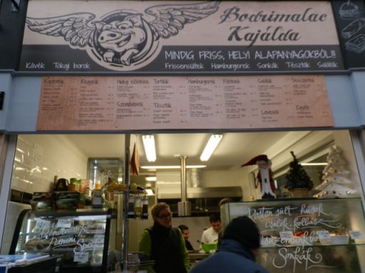 Mert a Bodrimalac kajálda kínálata kifejezetten jó. Nem estek túlzásokba, de lényegében az egyszerű reggelitől, a tartalmas ebédre valón át, az elmaradhatatlan helyi hamburgerig mindent kínálnak. Sőt a sültvér éppúgy elfér az étlapon, mint a poharas lazackrém, de nem hiányzik a desszert és a minőségi kávé sem. A döntésképteleneknek vagy a tényleg nagyon sietőknek pedig egyféle napi menü is van. Nem mondom, hogy a kínai büfé, vagy a helyi lángosos árával versenghetnek, viszont az amerikai gyorsétterem árának töredékéért lehet többet, jobbat és egyedit enni náluk.