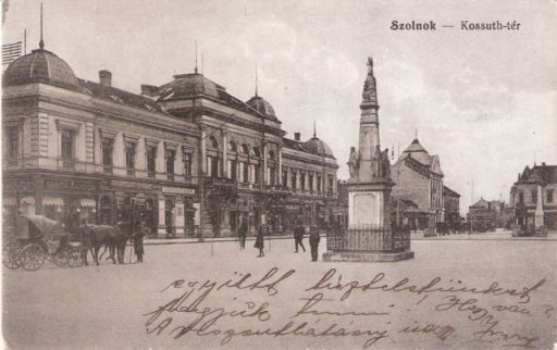 Ezt a Gerő Ignácz kiadásában megjelent szolnoki képeslapot 1917. október 31-én adta postára szerintem egy szabadságos katona. A kép a feladás előtti tíz évben készülhetett, tehát mondhatjuk, hogy ilyen volt Szolnok főtere egy évszázaddal ezelőtt.