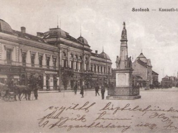 Ezt a Gerő Ignácz kiadásában megjelent szolnoki képeslapot 1917. október 31-én adta postára szerintem egy szabadságos katona. A kép a feladás előtti tíz évben készülhetett, tehát mondhatjuk, hogy ilyen volt Szolnok főtere egy évszázaddal ezelőtt.