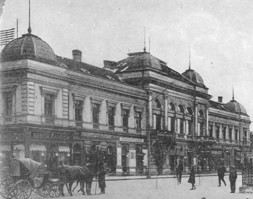 A Népbank feliratú, szerintem kifejezetten szép épületről már sokszor esett szó. Ez ma is áll, csak éppen 1974 óta az a borzalmas alumíniumhatású borítás van rajta. Átépítése után Sztár áruházként működött vagy negyedszázadon keresztül, ma pedig papírbolt van a földszintjén, az emeletein pedig talán konditerem. Maga az eredeti épület a Népbank székházának – emeletén lakásokkal – épült 1907-ben. Mellette van még egy földszintes ház, majd következik az az emeletes épület, amiben a hetvenes évek elején egy bizományi üzlet és egy papírbolt működött. És, ami a Nerfeld-palota elpusztításának esett áldozatul, hogy helyére az Árkádot építsék. Hozzátéve, hogy az a régi épület természetesen nem sérült meg az 1969. április 11-ei legendás Centrum tűzben.