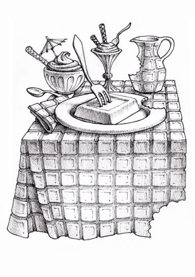 Amint kihagyhatatlanok a csokoládé számot illusztráló Rékassy Eszter grafikák, amiket nézegetve sajnos még nem tudtam rájönni, hogy miért és honnan is annyira ismerősek. Mert az biztos, hogy ezek nem olyan grafikák, amikből lehet csak egyet és egyszer megnézni. Őszintén mondom, számomra az utóbbi évek Esőinek legjobb illusztrációi ezek a munkák.