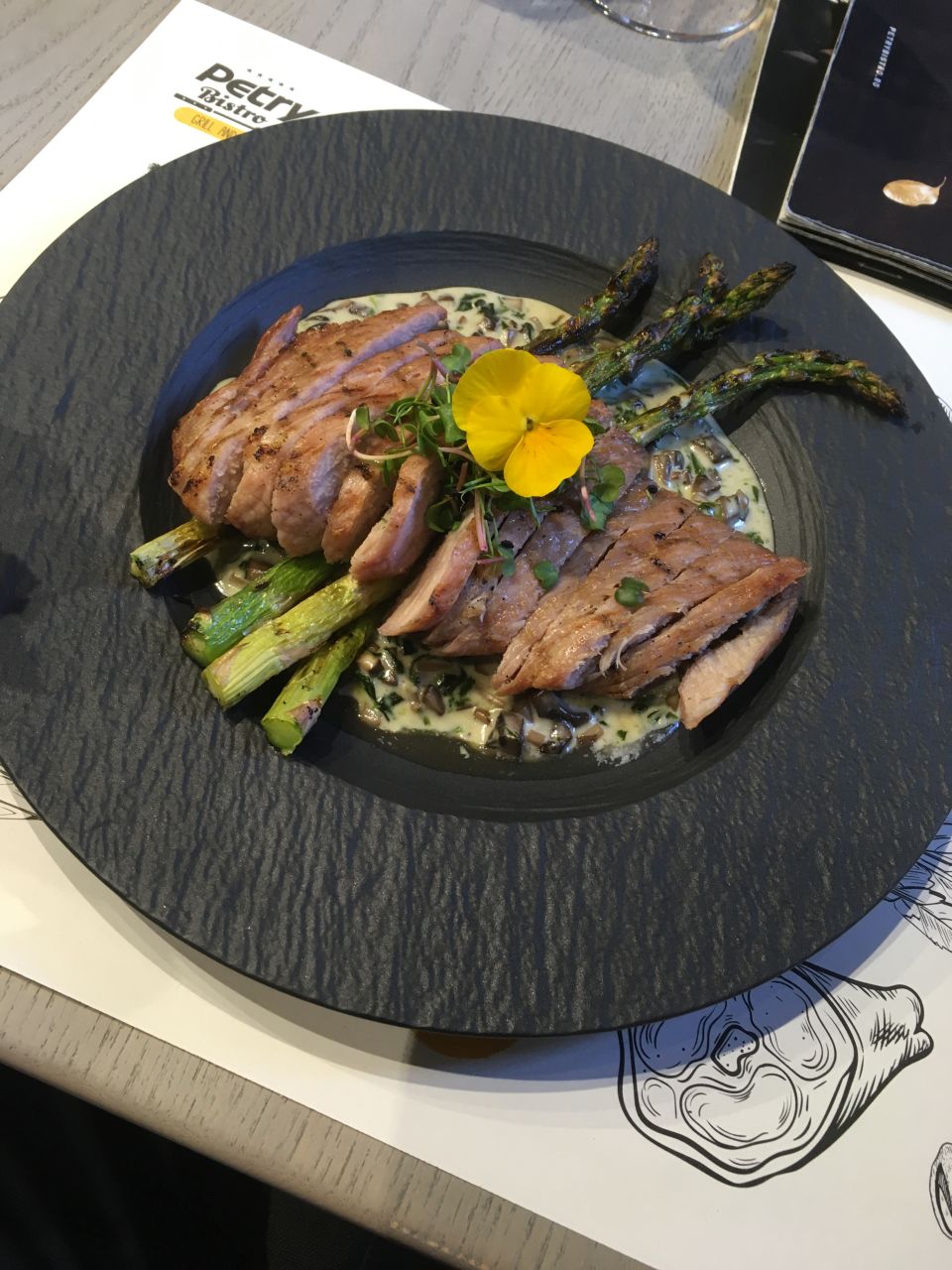 Első este, az idő szűkössége miatt a Kultúrpalotával szemben lévő Petry húsboltban vacsoráztunk, ahol „tépett” disznóhúsból olyan isteni melegszendvicset csináltak, amihez fantasztikus savanyúságokat adtak, hogy tényleg megnyaltuk mind a tíz ujjunkat. Ráadásul elképesztően kedves és figyelmes kiszolgálásban volt részünk, amire akkor még azt hittük, egyedi. De nem. Mert másnap délután meg a Petry Látványműhely és Múzeum éttermében ebédeltünk, és a pincér ott is levett a lábunkról bennünket. Elképesztő hagymalevessel nyitottam, majd a felszolgáló javaslatára „papszelet Jasperben, spenótos barna csiperke, grillezett spárga” összeállítással folytattam, amiért bármelyik fővárosi étterem versenghetne. A harmadik napon pedig az egyszerű bisztrónak tűnő B-Eat nevű helyre tértünk be a főtéren, ahol tulajdonképpen egy magyaros, hétvégi ebédet fogyasztottunk, de hibátlanul elkészítve. És, hát ott is olyan kedves, előzékeny, sőt a végén már baráti beszélgetésbe torkolló volt a kiszolgálás, amire itthon évek alatt tehet szert egy helyen a törzsvendég.