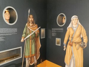 Pedig maga a kiállítás is elég jól van felépítve, holott azért nem nagyszámú – talán száz tétel lehet a tárlókban – leletanyagról van szó. Viszont minden, amit meg lehet nézni, az nagyon jól van megvilágítva, feliratozva és elmagyarázva. Nem vagyok a kora középkornak sem szakértője, sem rajongója, de még csak kedvelője sem, ám nagyon régen szórakoztam ilyen remekül régészeti kiállításon. Tényleg a kisfilmben elmondott történetet járhattam le két faluban is. És közben elgondolkodhattam azon, hogy kik és hogyan is élhettek ezen a környéken jó másfélezer évvel ezelőtt. Akikről írott anyag nem vagy csak alig maradt fenn, így minden, amit tudhatunk róluk a régészek és a mindenféle modern eszközöket alkalmazó tudósoknak köszönhetően mondható el. Például egy csontfésűből, vagy egy másfél ezer évig a földben lévő kard hüvelyéből, az emberi maradványokból vagy éppen a mából nézve is gyönyörű ékszerekből kihámozva. Izgalmas kirakós játék.