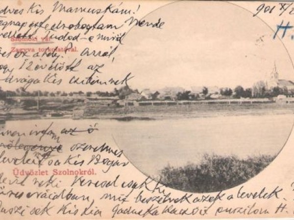 Ez jól látszik ezen a szolnoki üdvözlőlapon is, aminek H. Ö. a képes oldalát írta tele a szerelmes üzenetével. Talán eleve emiatt is választotta ezt a lapot, hiszen a fotó nem foglalja el a teljes felületet, azaz anélkül lehetett írni rá, hogy a látvány sérült volna. Nem zárható ki, hogy Kalmár Miksa kiadó éppen ilyen megfontolásból készítette a képkivágást, bár ha jobban megnézzük Szigeti Henrik fotóját, maga a tartalom is valami hasonló megoldásért kiáltott. Az üres folyót és az eget nyugodtan le lehetett vágni a képről.