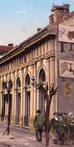 Nagyon sajnálom, hogy a kép jobb szélén, az első ház tűzfalán lévő reklámok lemaradtak a fotóról. Mintha fölül egy kerékpár- és járműkereskedés, alatta pedig valami vasbolt hirdetné magát. A Sütő utca sarkán, a ház emeletén azonban kivehető a gazdák bankja felirat. Kár, hogy így kideríthetetlen, hol is lehetett bő száz esztendeje az a bank. A Sütő utcában, a sarki házban vagy valahol egészen máshol, de a belvárosba vezető út mentén itt lehetett a legjobban elhelyezni a korabeli reklámot. A kép előterében lévő sárga épület homlokzatán egyébként még egy felirat vehető ki: étterem. Sajnos a teljes neve nem olvasható, pedig a földig érő, kilenc portálablak alapján talán nem tévedünk, ha azt mondjuk, komoly vendéglátóipari műintézmény lehetett.