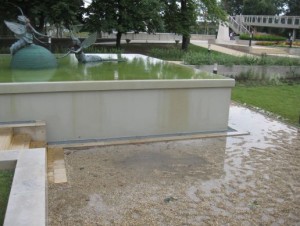 A szökőkúton kívül is áll a víz. Pontosabban, folyamatosan ömlik ki, azaz szökik a víz a tiszavirágok alól. Pedig fél éve sincs, hogy működik, pedig alig két hónapja, hogy felavatták. Lett egy szép hidunk, meg klassz terünk, és kaptunk hozzá egy megoldhatatlan technikai problémát. Vagy egyszerűen a víz az úr?