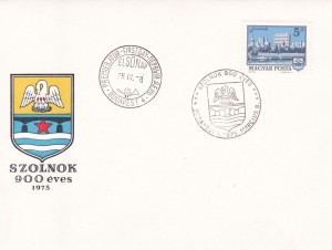 A mából nézve ennek a borítéknak az igazi érdekessége a két bélyegző. A bal oldali az elsőnapi dátumra utaló viszonylag egyszerű postai pecsét, míg a jobb oldali már egy kifejezetten alkalmi nyomatnak tekinthető. Számomra mindkettő esetében a legérdekesebb az 1975. március 8-ai dátum, ami nem igazán tudom, hogyan és miként kapcsolódott akár Szolnokhoz, akár a 900 éves jubileumi eseményekhez. Annak a napnak ugyanis a legnagyobb eseménye a Magyar Szocialista Munkáspárt XI. kongresszusára készülő, elvileg a közel harmincezer Szolnok megyei kommunista nevében tanácskozó helyi pártértekezlet nyitánya volt. Lehet, hogy ez az esemény előtt „tisztelgett” a Magyar Posta ezzel az elsőnapi kiadványával? Na, de akkor miért Budapesten bélyegezték? (Ha valaki tudja a válaszokat, ne tartsa magában!)