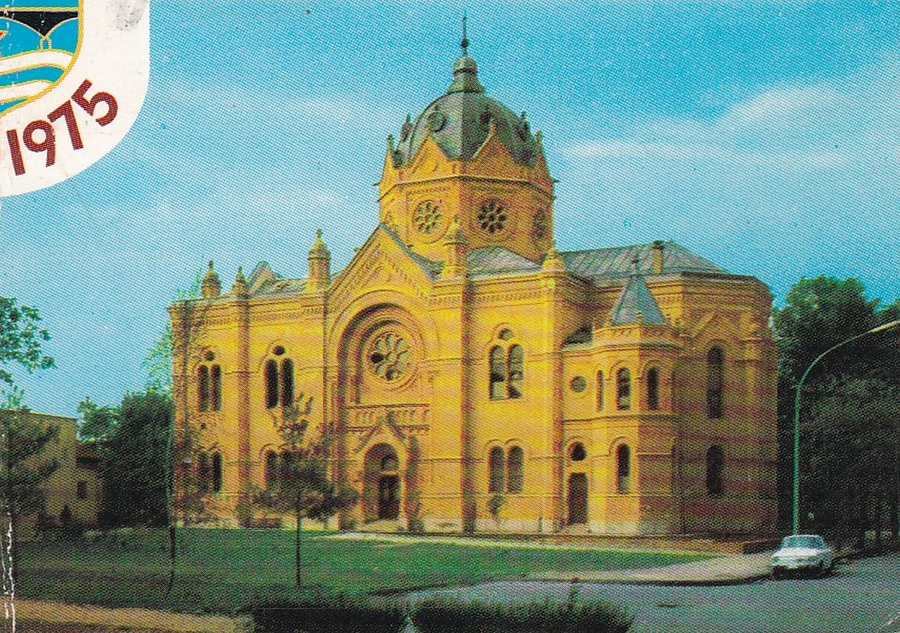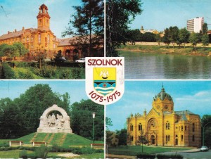 Számomra igazi csemege a jobb alsó sarokba került felvétel a Szolnoki Galériává lett zsinagógával és a mellett parkoló fehér 100-as Skodával. Leginkább azért, mert úgy tűnik, kevés ennél többször felhasznált fotója van a Kádár-kori Szolnoknak. A galéria állapota, illetve a Skoda miatt ez a kép valamikor 1972-1974 között készülhetett, és valamiért annyira megszerették a különböző szerkesztők, hogy szerintem egymástól függetlenül is többször felhasználták. Az biztos, hogy volt belőle önálló képeslap, felbukkant mozaiklapokon, de a Szolnok megyéről szóló könyv borítójához is ezt a felvételt használták, sőt, emlékeim szerint, könyvillusztráció is lett belőle. Ezek után persze már csak az a kérdés, hogy kié volt az a fehér Skoda?