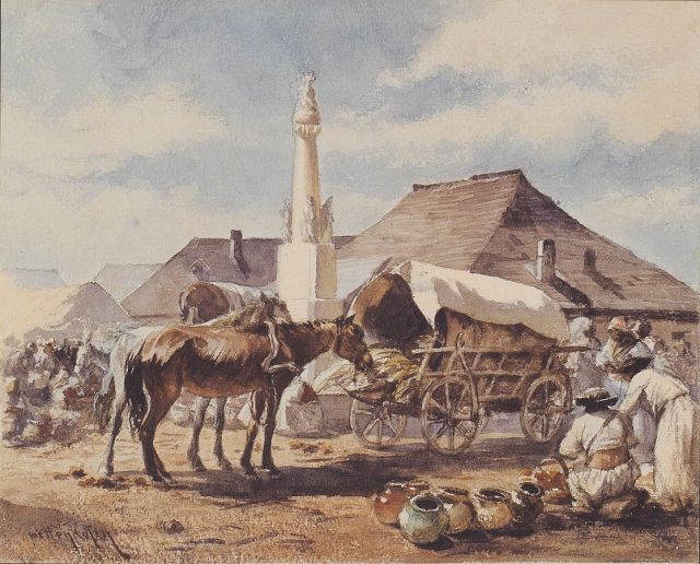 Merthogy két évvel később visszatért Szolnokra, amit aztán harminc éven keresztül rendszeresen megismételt. A róla szóló dolgozatok némelyike úgy ír róla, mintha folyamatosan itt élt volna, míg máshol az olvasható, hogy abban a három évtizedben csak a nyarakat töltötte itt, télire pedig Párizsba vonult. Ugyanakkor olyan emlékezés is fellelhető, miszerint összesen tizenegy alkalommal töltött hosszabb-rövidebb időt Szolnokon. Ami tulajdonképpen lényegtelen, mert attól kezdve, hogy 1851-ben kőnyomaton megörökítette az első szolnoki csatát, folyamatosan festett a városról. A piac, a cigányok, a vásári forgatag, a vágtató fogatok, az alföldi táj voltak a kedvenc témái, amelyekből – ugyancsak az egyik forrás szerint – közel kétszáz szolnoki képe született.