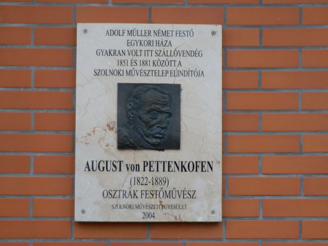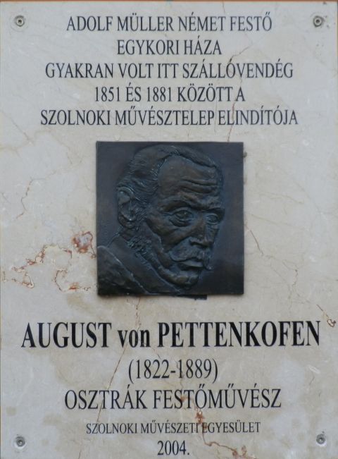 A Vártemplom mögött, a Szent István tér 5. számú társasház utcai homlokzatán található az August von Pettenkofen (1822-1889) osztrák festőművészt ábrázoló dombormű. A kissé eldugott emléktáblát a Szolnoki Művészeti Egyesület állította 2004. június 26-án, a Művésztelep egykori „garden party-jait” idéző ArtJáró fesztivál keretében. A Pogány Gábor Benő által készített portrénak nemcsak a „modellje” érdekes, de az emléktábla helyszíne és sorsa is.