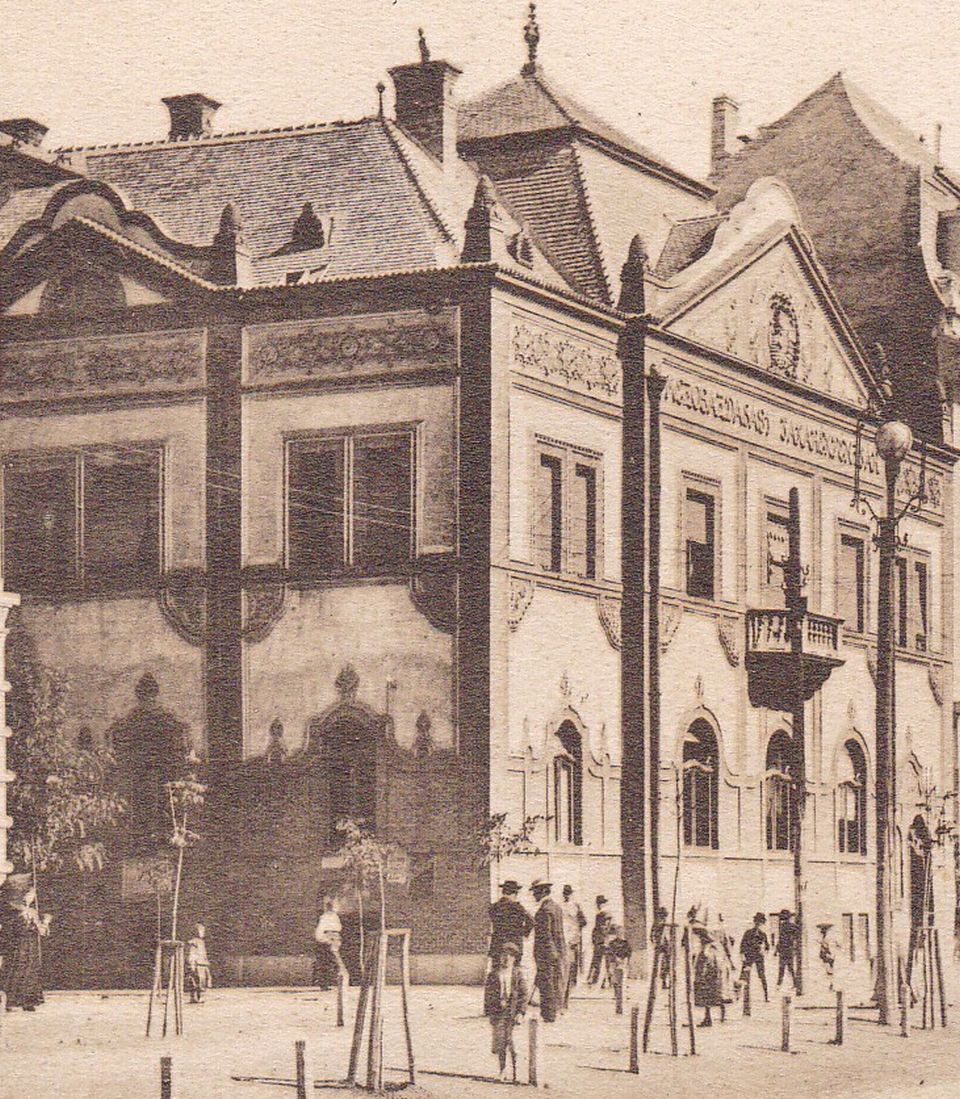 A szolnoki Kossuth utcai szecessziós Mezőgazdasági Takarékpénztár megörökítése lehetett Róth Dezső kezdő vállalkozó feladata 1906-ban, de szerencsére kicsit „ügyetlenre” sikeredett első munkája. Így inkább egy szolnoki életkép született építkezéssel és a fotóst figyelő helyiekkel.