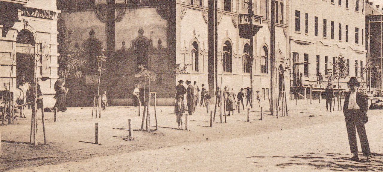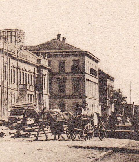 Ám nem ez az egyetlen érdekessége ennek a szolnoki Mezőgazdasági Takarékpénztárt bemutatni hivatott lapnak. Hanem mondjuk, a jobb szélen látható lajtoskocsi is, amivel vagy a folyókról vagy a Kossuth téri artézi kútról szállíthattak vizet a városnak azokra a távolabbi pontjaira, ahol 1906-ban még nem volt kiépített vízvezeték. Azaz Szolnok legtöbb házához, hiszen a vízvezeték-hálózat kiépítése majd csak néhány évvel a fotózás után kezdődött a városban. Szemben például a villamosenergia-hálózat fejlesztésével, ami akkoriban már a város kezelésében, Szolnok több utcáját is elérte, miként az ezen a képen is kibogarászható lámpa és trafó is bizonyítja. Számomra legalább ennyire érdekes, hogy ez egy olyan felvétel, amin még nem látszik a Szabadság tér sarkán álló, tornyos Balogh-féle bérház. Ennek ott „lenne” a helye e felvétel jobb szélén, az utolsó ház – Gyömörey Félix egykori polgármester – palotája után, már ha a fotós nem 1906-ban dolgozott volna.