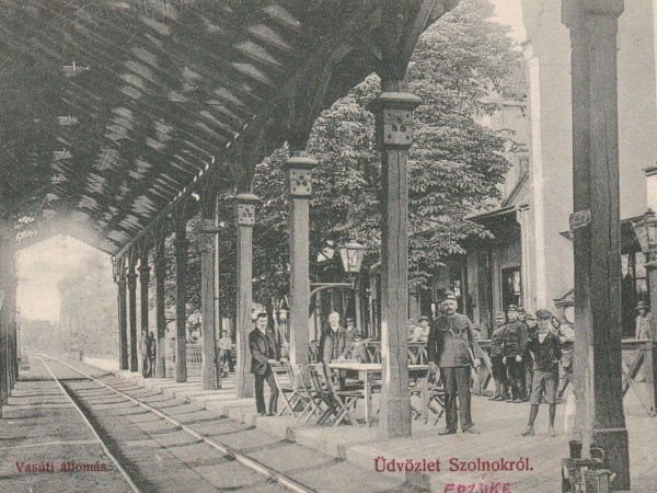 Akár e képeslapon megörökített látványhoz hasonló is fogadhatta 1907 nyarán a Sátoraljaújhelyről Szolnokra érkező Erzsikét. Merthogy akkor még állt a régi, azaz kettővel ezelőtti szolnoki vasútállomás, amelynek peronján vendéglő működött, néhány sínje fölött pedig facsarnok volt.