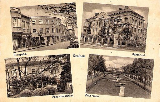 A Papp-szanatórium létezéséről egy a harmincas években kiadott szolnoki, mozaik képeslap révén szereztem tudomást. A lap négy képéből a jobb alsó mutatja az intézményt, amin úgy látszik, hogy az egy kisebb parkban állhatott.