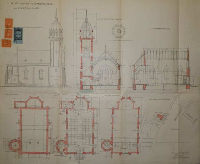 Az új szolnoki templom megtervezésére pályázatot írtak ki, amin végül Gerey Ernő műépítész, a wittenbergi vártemplomra emlékeztető elképzelése nyert. Az 1862-es születésű, ekkor tehát már közel hetvenéves építész a XX. század első évtizedeinek egyik legfoglalkoztatottabb építőművésze, aki több evangélikus templomot is tervezett. A szolnoki mellett a zalaegerszegi és a kondorosi evangélikus templomok tartoznak a munkái közé, de a fővárosi Deák téren álló evangélikus templom felújításában éppúgy közreműködött, mint a híres Fasori Evangélikus Gimnázium megalkotásában.