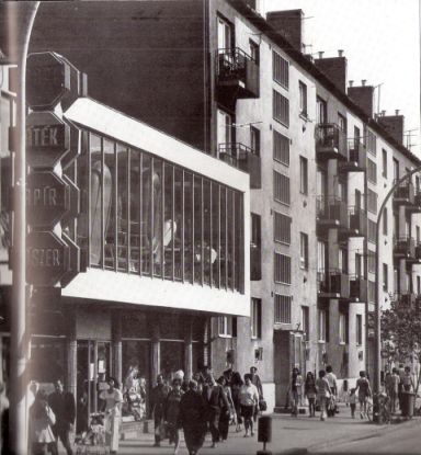 Az utóbbi évtizedekben már úgy él az emlékeimben, mintha pár évente másféle üzlet költözött volna a falai közé. Mielőtt bútorbolt lett, biztos, hogy volt benne gyerekruha bolt, korábban meg talán a megszűntetett Sztár szerepét töltötte volna be. Maga az épület, építészetileg nem túl izgalmas, ám egy, a hetvenes évek elején készült fotó, illetve térkép kapcsán foglalkoztatni kezdett. Mert szerintem kényszerhelyzet vagy hirtelen döntés pottyantotta a mai helyére az épületet.