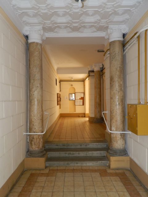 Érdemes kívülről is körüljárni a nem szimmetrikus, nem szabályos U alakú, kívülről kettő – a Damjanich utcai szárnyon belülről három – szintes épületet. Egyrészt minden oldalán nagyon szép stukkók díszítik – női fej, babérkoszorú, girlandok -, igaz sok helyen a gázkonvektorok kivezetése beléjük rondít. A gazdag stukkózás egyébként belül is megtalálható, a lépcsőház földszinti oszlopain, az egykor előkelőbb lakások bejárati ajtói fölött és a plafonon is. Érdemes a Kossuth utca felőli, első emeleti négy erkélyre is felnézni, ahol hat szobor – három férfi és három nőalak – áll. Illetve mindeközben érdemes az önmagukban is szép kovácsoltvas korlátokat is észrevenni.