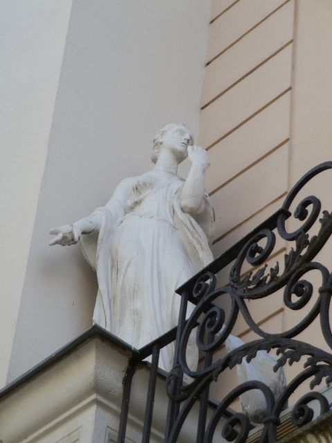 Érdemes kívülről is körüljárni a nem szimmetrikus, nem szabályos U alakú, kívülről kettő – a Damjanich utcai szárnyon belülről három – szintes épületet. Egyrészt minden oldalán nagyon szép stukkók díszítik – női fej, babérkoszorú, girlandok -, igaz sok helyen a gázkonvektorok kivezetése beléjük rondít. A gazdag stukkózás egyébként belül is megtalálható, a lépcsőház földszinti oszlopain, az egykor előkelőbb lakások bejárati ajtói fölött és a plafonon is. Érdemes a Kossuth utca felőli, első emeleti négy erkélyre is felnézni, ahol hat szobor – három férfi és három nőalak – áll. Illetve mindeközben érdemes az önmagukban is szép kovácsoltvas korlátokat is észrevenni.
