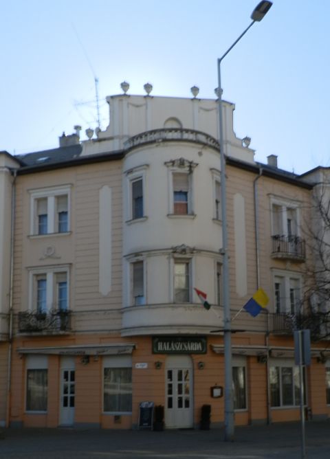 Az épület ismertségét a földszinti üzletei adták. Az átadása után patika, cipőbolt, rövidáru kereskedés is működött benne, illetve a sarkon a Horváth cukrászda, aminek tulajdonosa – Mészáros Géza riportja szerint – az épületben is lakott. A házat átadása után nagyjából húsz évvel államosították, földszintjére pedig az Utasellátó Állami Vállalat egysége költözött, amit a Szabadság téri helyközi „buszpályaudvar” indokolt. A lassan lepukkanó „utasellátó” helyén 1961 kora őszén nyitották meg a Híd-bisztrót, ami nemcsak különleges kávékat, egyszerű ételeket, italokat, de fagylaltot is kínált. Nem kell hozzá nagy fantázia, hogy a közeli Damjanich uszoda, illetve a környék hivatalai miatt sikeresen működő vendéglátó-ipari egység lehetett. Emlékeim szerint, még a rendszerváltás után is létezett, majd talán egy sörmárkáról elnevezett étterem, később pedig a ma már legendás szolnoki Halász csárda került a helyére.