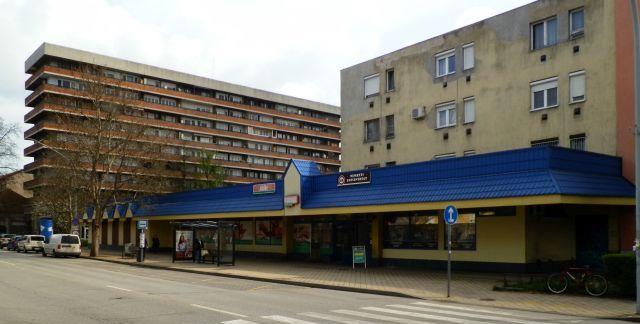 Szolnok első, viszonylag nagy alapterületű – tehát egy polgári lakásnál méretesebb – élelmiszerüzlete a Baross utca elején lévő néhai 1-es, 1946-os megnyitásakor Konzum nevet viselő bolt volt. A következő, ennél nagyobb, élelmiszerre szakosodott üzlet az 1951-ben a fővárosi Csemege Kereskedelmi Vállalat által a Cukorgyári bérház földszintjén kialakított üzlet lett, ami a keresztségben, 1952-ben a „Hatvanas” nevet kapta. A hatvanas évek végéig hasonló – tehát meglévő épületek földszintjén, korábbi üzlethelyiségek összenyitásával kialakított – üzletekkel igyekeztek megoldani az egyre népesebb város élelmiszerellátását. Plusz a piac és a mindenféle kisboltok – hentesek, zöldségesek, vegyesek, kenyérboltok – jöhettek számításba. Ugyanakkor látszott, hogy hosszútávon nem ez lesz a megoldás. Modern, nagy alapterületű, széles választékú, egyszerre sok vásárlót kiszolgálni képes üzletekre volt szükség.