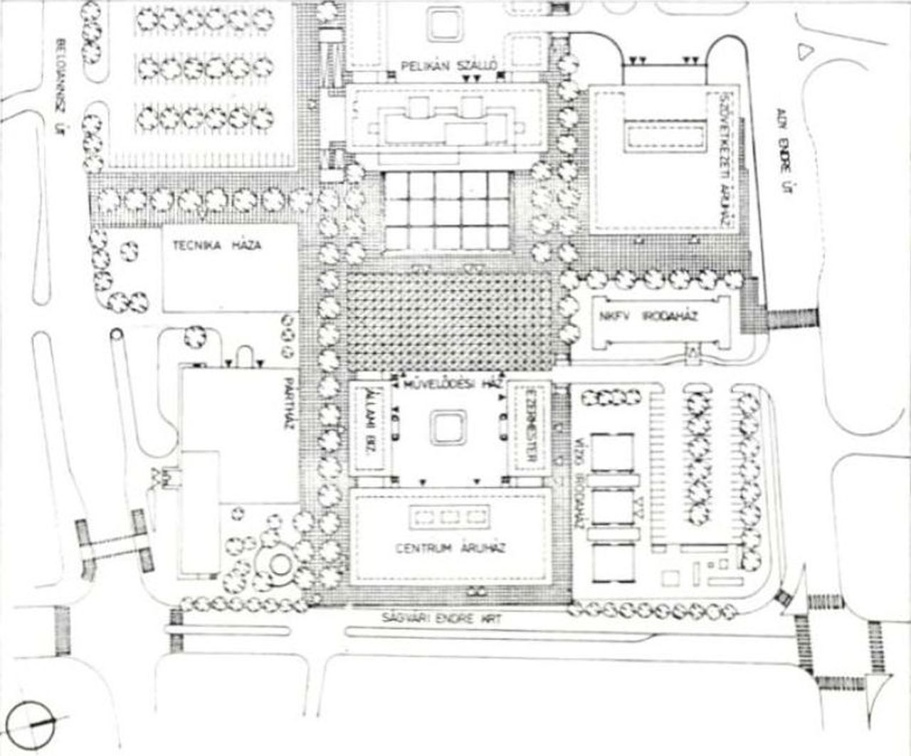 Helye akkor már az „új városközpontban” volt kijelölve, ahol először a pártház épület fel, majd elindult a Centrum áruház, a Pelikán hotel és a Vízügyi székház beruházása, és terv szintjén további irodaházak, és üzletház is került volna a területre. Sőt, egy általam most talált korabeli helyszínrajzon az látható, hogy a mai Agóra helyére már a hetvenes években szerettek volna egy Technika házát építeni (a később Technika házzá alakult kaszinó épülete akkor még Úttörőházként funkcionált). Az akkori cikkek alapján az is egyértelműnek tűnik, hogy a hetvenes években úgy gondolták, Szolnok új főtere a majdani Pelikán és a művelődési ház által közrefogott terület lesz. (Hild tér csak 1988-ban lett az addig névtelen közterületből.)