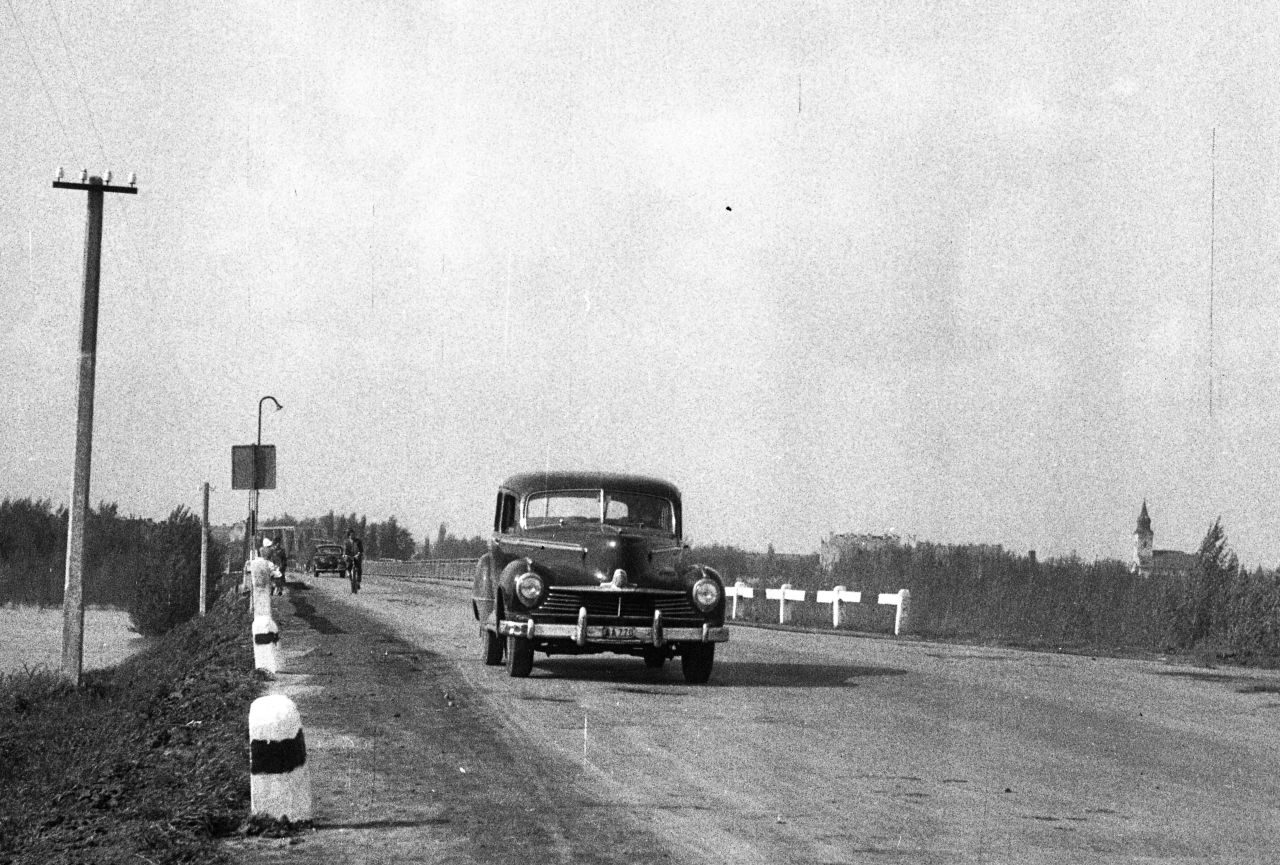 A civil kezdeményezésre, közösségi közreműködéssel és támogatással működő és gyarapodó Fortepan.hu oldalon nagyjából félezer szolnoki témájú fotó található a 20. századból. A nagyjából kifejezés ebben az esetben azért rendkívül fontos, mert a Fortepan kollekciója folyamatosan bővül, ezért időről időre érdemes „bekukkantani” hozzájuk, hátha kerültek fel az oldalra újabb szolnoki képek. Számomra újdonság például a mellékelt 304216-os számú fotó – nyitókép ennek vágott változata –, amit Beszeda László Zoltán adományozott a Fortepan-nak, készítési évének pedig 1957-et adták meg. Sokkal később nem is születhetett, hiszen a felvétel előterében lévő, számomra ismeretlen márkájú személyautó rendszáma még két betűből és három számból áll, ilyeneket pedig 1958 őszéig használtak Magyarországon. A rendszám – BA 770 – alapján még egy dologban lehetünk biztosak: államigazgatási (tanácsi), termelőszövetkezeti vagy állami gazdasági tulajdonú autó gurul le az ártéri „százlábú hídról”.