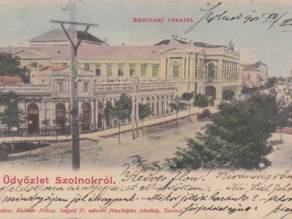 Ez a képeslap még abból az időből származik, amikor a kiadók meg a mindenféle hatóságok valamiért azt gondolták, hogy az emberek megelégednek azzal, ha egy szép képet küldhetnek postán az ismerőseiknek. Merthogy 1905-ig, az úgynevezett hosszú címzéses képeslapok szöveges, vagy bélyeges oldalára a címen kívül nem volt szabad semmit sem írni. Ami persze nem nagyon működött, mert a postázásért 4 fillért, és valószínűleg a lapért is ugyanennyit fizető vásárlók ezt nagyon gyorsan elkezdték „kijátszani”. Azaz az anzikszok képes oldalára írni. Talán nem véletlen, hogy ennek az 1901-ben postázott szolnoki lapképes oldalának az alsó ötöde szinte üres volt, azaz vonzotta a betűket.