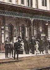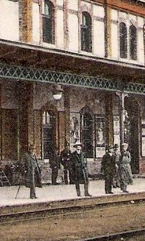 Mármint az 1908-ban új állomáson. Az ehhez a képeslaphoz használt, később színezett fotó ugyanis biztos, hogy alig néhány hónappal a harmadik szolnoki vasútállomás átadása után készült. És a sokszor látott épület mellett legalább olyan érdekesek az állomáson álldogálók.