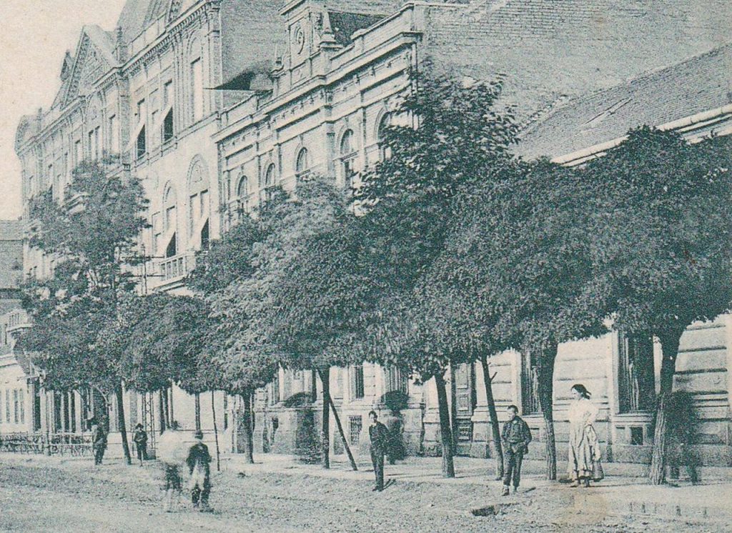 A zsinagóga már áll, az Erlich-féle lakóház viszont még nem, tehát 1899 és 1911 közötti lehet a felvétel