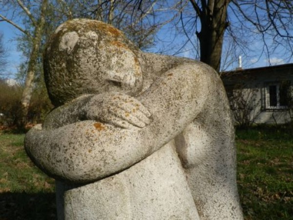A szolnoki szobrok jeles gyűjtője, Tóth György-Gyigyi bácsi 2010-ben még azt írhatta a Köztérképen lévő műlapjára, hogy az 1976-ban felállított alkotás egy szépen gondozott parkban található. Ez ma már nem mondható el. Bár még kivehető a szobor körüli park kőből kirakott széle, sőt az autóút felőli kőlépcső is megtalálható még, ám a természet lassan visszaveszi a területét. Amiért nem hibáztathatunk senkit, hiszen nem lenne könnyű megmondani, kié is ez a szomorú leányka. Nem hinném, hogy Bige úr ezt is megvette volna a TVM-mel együtt. Talán a városé, azaz a miénk.
