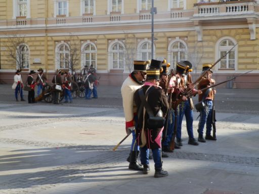 Nekem úgy tűnt, idén mintha kisebbek lettek volna a szembenálló seregek, talán az ágyúk is ritkábban dörrentek, és lovasból is kevesebb vágtatott. Ami persze nem akadályozta meg a játék résztvevőit, hogy a Szapáry út felől indulva, fokozatosan bevegyék a várat jelképező Kossuth teret. Volt lovasroham, lóháton vívás, gyalogos sortűz, közelharc, sebesültek, népfelkelők, kellő füst és zaj. Illetve szakértő, szórakoztató kommentár. És természetesen nézőből sem volt hiány. Bár a korábbi években mintha belőlünk is több lett volna.