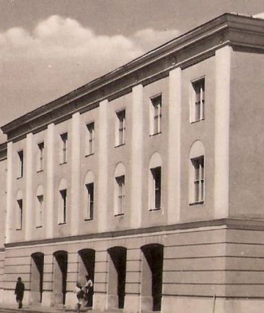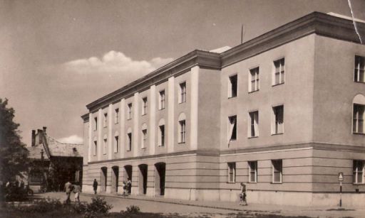 Persze az épület a fotózás óta sokat változott. Szerintem nem feltétlenül az előnyére. Ami ezt a régi felvételt nézve azonnal feltűnik, hogy az SZTK-nak akkoriban még sokkal alacsonyabb volt a teteje, amit a legutóbbi felújításkor annyira megemeltek, hogy egy plusz szintet tudjanak alárejteni. Ezzel magyarázható a főbejárat fölötti, három nagy ablakos, tetőtéri kiemelés is. Ugyancsak más volt az épület főbejárata, hiszen ötnyílásos árkádon keresztül lehetett az ajtóhoz jutni. Ma e nyílások helyén ablakok, mögöttük belső helyiségek vannak, ráadásul plusz ablak is került a kiugró rész oldalára. Sajnos nem emlékszem az épület korábbi színére – mintha valami szürkés-sárga lett volna -, így nem tudom, hogy a mai hús- vagy rózsaszín mennyire tér el az eredetitől. Az viszont tény, hogy a jelenlegi külső burkolás azért nyomokban emlékeztet az első tervekre, hiszen mind a vízszintes csíkozás, mind az áloszlopok megmaradtak. Csak az ablakok fölötti félkördíszítések nem stimmelnek az első emeletnél.