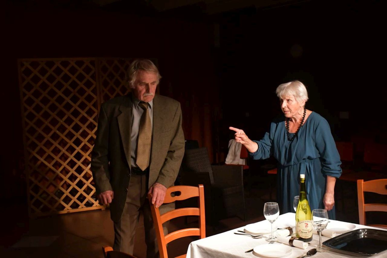 A nyílt színi kezdés kifejezetten jót tesz az előadásnak. Részben nyilván praktikus okok indokolják ezt az indulást, mivel az előadás nem a klasszikus értelemben vett „színházi” keretek között zajlik. Nincs függöny, nincs takarás, a mozitermes játék esetében pedig a fények használata is minimális szintre korlátozódik. Ezeket a körülményeket mégis saját hasznára tudja fordítani az előadás, ami Rigó József rendezői megoldásainak és „amatőr” színészeinek közös érdeme. Ameddig néző van a teremben – az első előttitől az utolsó utáni pillanatig tehát – játszani kell. Így, amikor a férj egykori szeretője a cselekmény szerint még meg sem érkezett Kreszék lakására, a nőt alakító Kertmari Annának úgy kell a nézők látóterében ülnie, úgy kell jelen lenni, hogy valójában nincs ott. Nem könnyű feladat ilyen szituációban is szerepben maradni, de hasonló helyzetekben Ulviczki Sándor (a férj) és Déri Erzsébet (a feleség) is profin oldja meg a feladatot. Nem is lehetne ez másképp, mivel ők is tudják, a darab értelmezésének szempontjából is kulcsfontosságú lehet, hogy a teljes nyíltszínűség következtében időnként a néző abban sem lehet biztos, hogy egy két szereplős dialógust nem hallhatott-e a konyhában vagy a teraszon tartózkodó harmadik fél, hiszen az illető valamilyen módon végig a szemünk előtt marad. Az ilyen helyzetekből fakadó bizonytalanság a feszültség növelésére, a történetszálak szövevényességére és az egyéni indítékok, belső vívódások plasztikussá tételére egyaránt termékenyen hat.