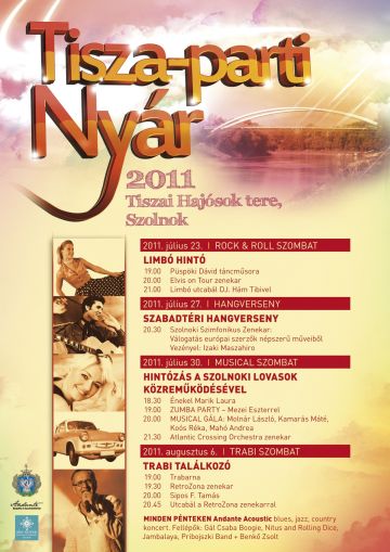– Az elsődleges szempont az volt, hogy a szolnoki tehetségeknek teremtsünk fellépési lehetőséget. A nyitó programunk például Püspöki Dávid és tanítványainak táncbemutatója. Róla azt érdemes tudni, hogy a társastánc legújabb trendjeit mutatja majd be. Az Elvis on Tour zenekart, ahol Csikány Tamás – azaz Fácán ? dobol, talán be se kell mutatni. Amerikai katonai kimenőruhában játszanak majd a zenekar nevéből is kikövetkeztethető számokat. Ugyanilyen ismert Szolnokon a Retro Zóna, vagy éppen a július 30-án közönség elé lépő Atlantic Crossing Orchestra. Persze nem véletlen, hogy Sipos F. Tamás vagy éppen a Koós Réka nevével fémjelzett operett társulat is a vendégünk lesz. Ha miattuk, az kedvükért jönnek el sokan a programjainkra, de meghallgatják a szolnoki művészeket is, akkor már elérte célját a rendezvény.