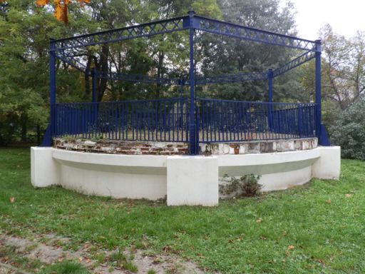 1. kép: néhai gáztartály alapja és acélszerkezete (A Tisza szálló mellett, a Zounuk ispán szobor és a sétány közötti, kék vasrácsos építmény.)