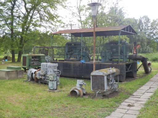 A maga nemében gyönyörű szivattyúházban lévő múzeum ajtaján újnak tűnő lakat. A kapu mellett a Tájak, korok, múzeumok bélyegző helyére utaló tábla viszont a régi, ahogy a Millér rozsdásodó térképe és a két gyönyörű kémény is. A zsilip felőli oldalon most be tudtam nézni a kiállítóhellyé alakított épületbe, így végre láthattam, mi van odabent. Eszközök, makettek, tablók és rengeteg fénykép. Talán a Tisza-vidék 200 éves vízgazdálkodását bemutató, a térség vízrajzát, valamit vízépítési munkálatait és technikáját felvonultató kiállítás, amit a hazai műszaki örökségek között tartottak – vagy tartanak még most is – nyilván.