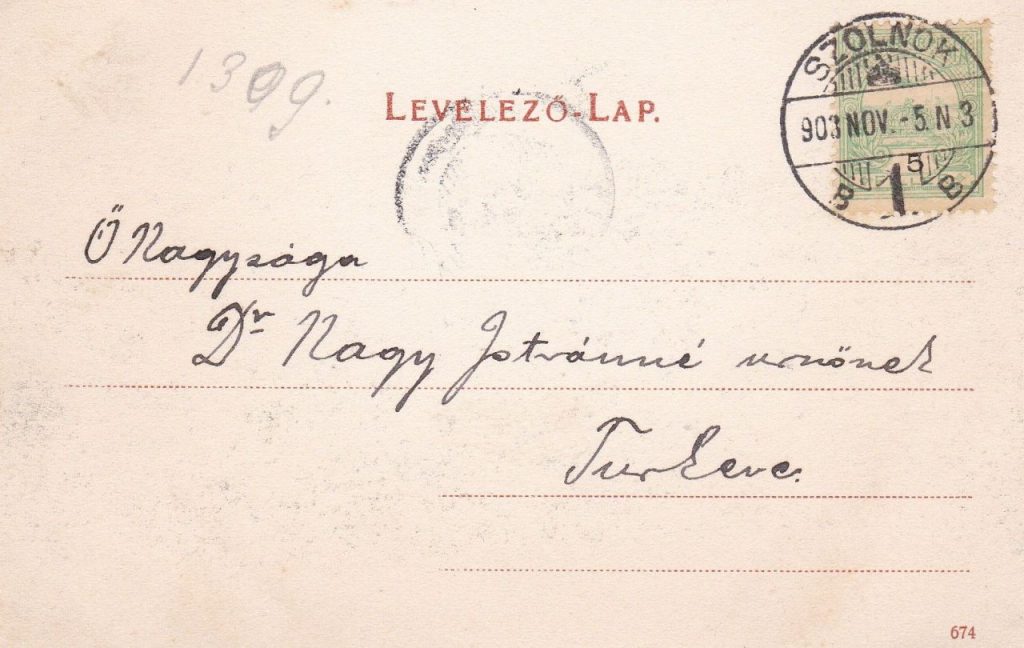 A mellékelt anzikszhoz használt fotóról, mivel feladója datálta illetve a postai bélyegző felirata is épen megmaradt, tudjuk, hogy legkésőbb 1903 nyarán készülhetett, amire a burjánzó növényzet a bizonyíték – még, ha azt utólag is színezték. A felvételt „uraló” zsinagóga pedig nagyjából kijelöli, hogy legkorábban mikor dolgozhatott az ismeretlen fotós, hiszen Baumhorn Lipót mesterművét 1899 nyarán adták át. Mivel építkezés nyomait nem lehet felfedezni a mai Szolnoki Galéria körül, számomra egyértelmű, hogy először 1900 nyarán dolgozhatott a templomtoronyba nem éppen könnyű felszerelésével felmászó fényképész. Így talán kijelenthetjük, hogy ez a felvétel a 20. század legelső éveinek valamelyikéből tudósít Szolnokról. Azaz ilyen volt a város a hosszú 19. század végén illetve a véres 20. század elején.