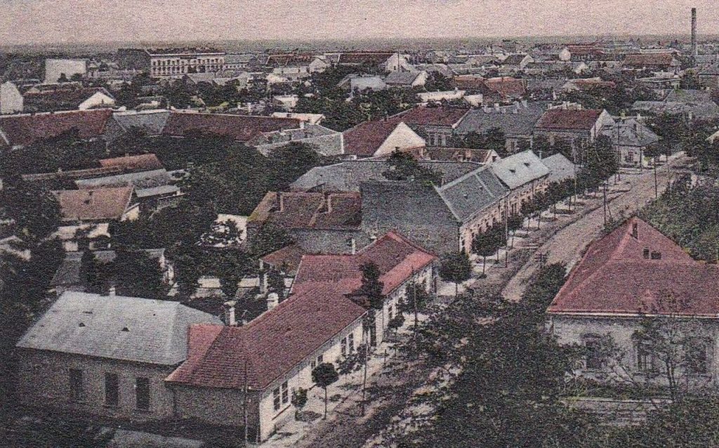 Sok hasonló képet bemutattam már itt, a blogSzolnok Album rovatában, így tényleg csak néhány érdekességre hívnám fel a figyelmet. A felvétel bal felső sarkában ellátunk a Kossuth térig, az az emeletes, nagy épület ugyanis a Magyar Király Szálloda, a mai múzeum, amit természetesen még nem takar ki az 1907-ben épült Népbank, és főleg nem vetekszik vele magasságban a csak 1924-ben felfelé megtoldott Pénzügyigazgatóság, azaz a mostani könyvtár. Nagyon szépen láthatók a Templom és a Szapáry utca elején egymáshoz simuló, utcafrontra épült polgárházak, amelyekből néhány még ma is áll. A felvétel bal szélén kivehető nagyobb tetőszerkezet pedig a mai Szapáry utcai óvoda helyén egykor álló épület része, ami a második világháború után a Koltói úti, azaz a mai Szegő iskola részeként, napköziként funkcionált.