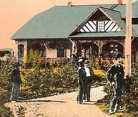 Akárhogy is nézem, a három év különbséggel postára adott két képeslapot, kétség nem férhet hozzá, hogy ugyanaz a fotó képezte az alapjukat. Nemcsak a háttér – a Szolnoki Művésztelep egyik épülete -, a négy figura ugyanaz, de még a növények és az árnyékok is. Hogy az eredeti képet ki és mikor készítette, az természetesen nem derül ki, csak annyi, hogy a fekete-fehér – feltételezhetően korábbi – változatot a szolnoki Bakos István könyvnyomdája és papírkereskedése adta ki. A színezett pedig a fővárosi Vasúti levelezőlapárusítás kiadványa 1917-ből.