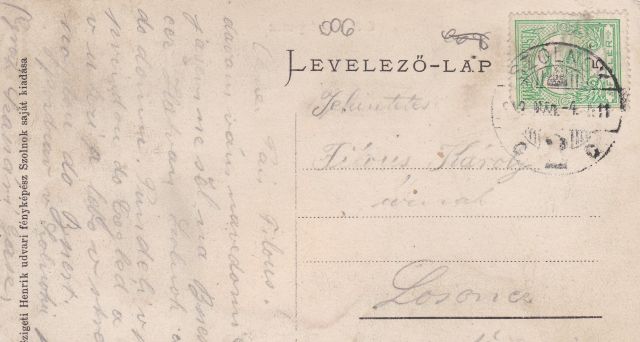 A fotó bal oldaláról, nagyjából a megörökített negyedik-ötödik ház helyéről ugyanis hiányzik a Szolnoki Hitelbank második helyi székháza, amit 1907-ben adtak át. Ez nem ugyanaz az épület, ami ma is azokon a telkeken áll – és leginkább „nagy OTP-ként” emlegetjük -, hanem az előtte három évtizedig ott szolgáló banképület, amire a Megyeháza melletti kisebb ingatlant cserélte a pénzintézet. Ez a bizonyos hiányzó épület és a Szigeti műtermének is otthont adó Kereskedelmi Bank átadási dátuma miatt gondolhatjuk, hogy ezt a nyári fotót csak 1906-ban készíthette a mester, hogy aztán jó pár évig forgalomban lévő, saját kiadású képeslap legyen belőle.